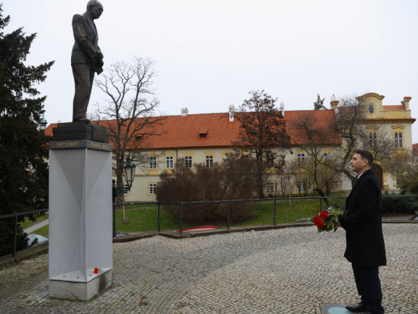 Petr Macinka vor dem Edvard-Beneš-Denkmal